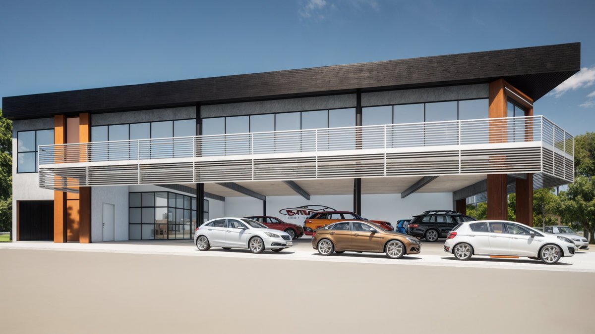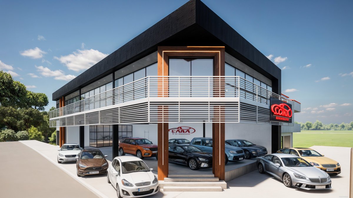Localizado no Centro de Rio Bonito-RJ, este projeto, já executado, totaliza 320m² de área construída. Exibe grandes linhas retas no estilo contemporâneo, chama a atenção com seu pórtico texturizado em aço corten iluminado, e vãos livres sustentados inteiramente em estrutura metálica abrigando confortavelmente uma agencia de veículos e amplas salas comerciais no pavimento superior.