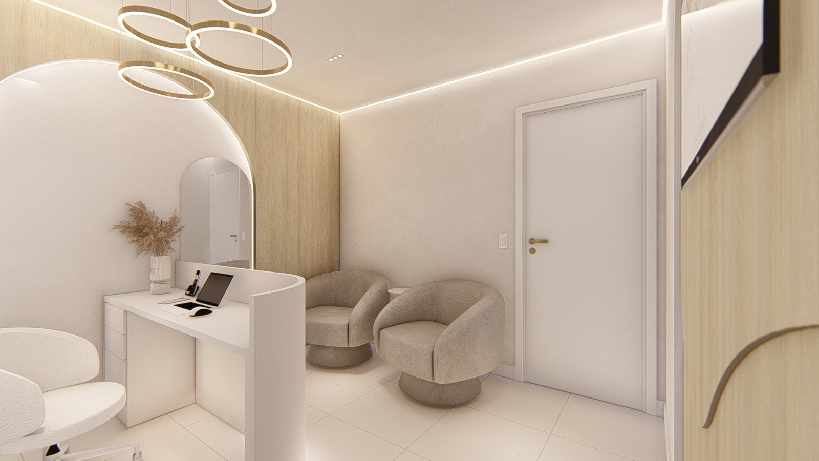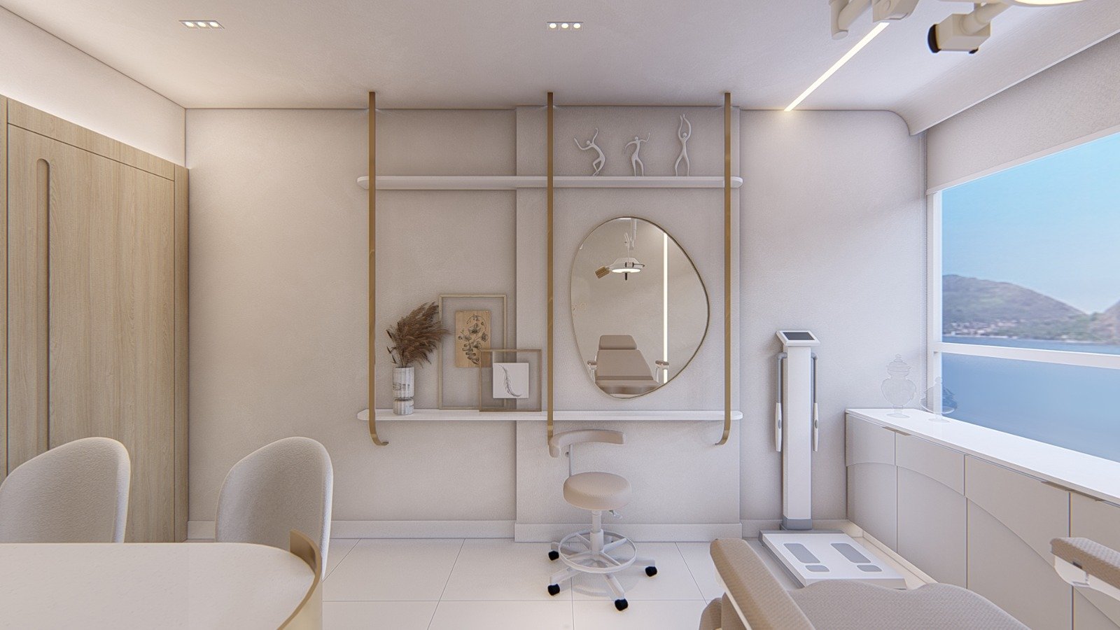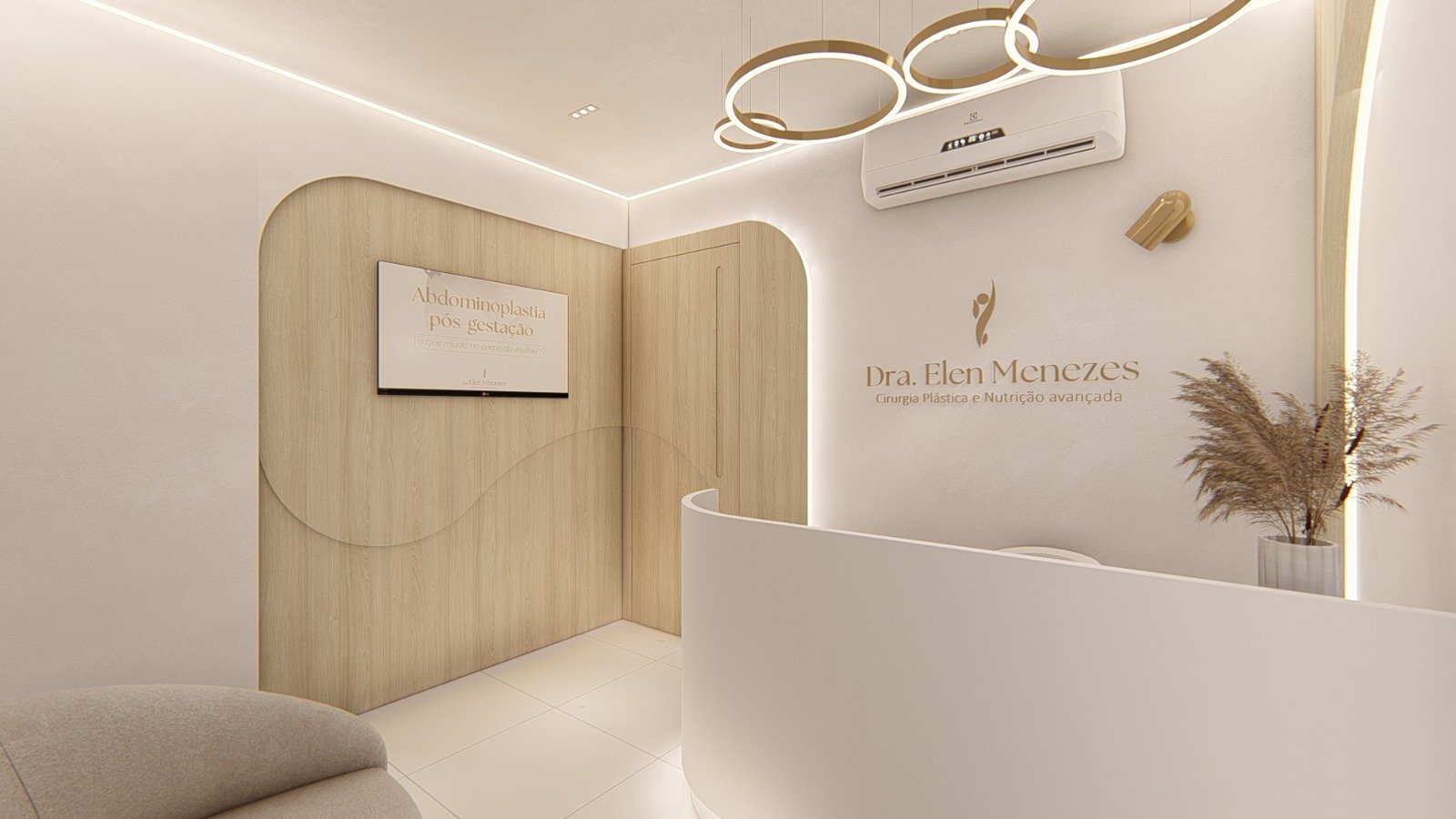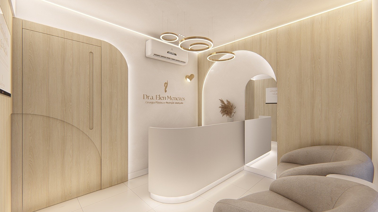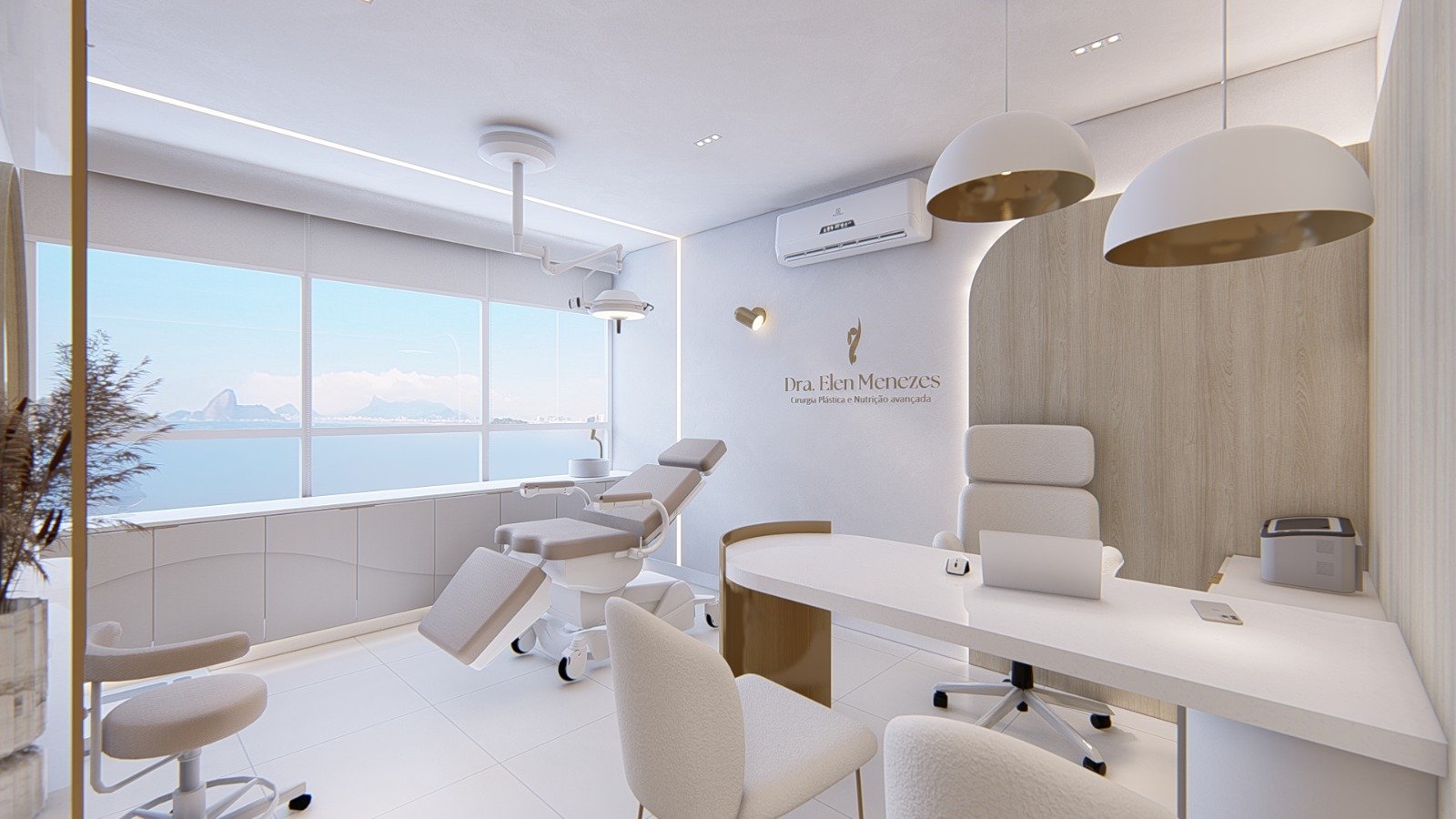 Localizado em Icaraí, Niterói-RJ, uma Medica Cirurgiã Plástica precisava de um ambiente acolhedor para seus pacientes, refletisse sua personalidade e de seu público, além de garantir a praticidade e assepsia necessária para realização de seus procedimentos. Para tornar isso possível o minimalismo contemporâneo, cores em tons quentes e metais dourados, criaram ambientes acolhedores, sofisticados extremamente funcionais, onde cada detalhe foi projetado para um máximo desempenho e satisfação de seus usuários.